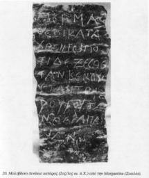 Κατάλληλο επίσης μεταλλικό υλικό γραφής ήταν ο μαλακός κασσίτερος. Και σε αυτό το υλικό βρέθηκαν γραμμένες κατάρες όπως αυτές που προαναφέρθηκαν. Ο Παυσανίας (4, 26, 8) αναφέρει τέτοιους γραμμένους ρόλους από κασσίτερο.