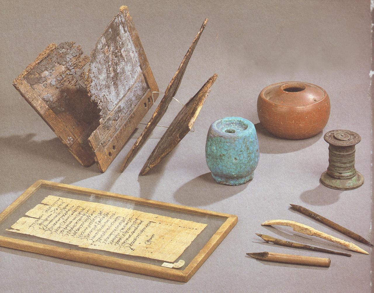 Στην αρχαιότητα χρησιμοποιούνταν ένα πλήθος υλικών γραφής, τόσο οργανικών, όσο και ανόργανων. Αντίθετα με μας σήμερα που γράφουμε επάνω στο χαρτί σχεδόν αποκλειστικά, οι αρχαίοι χρησιμοποιούσαν ένα πλήθος επιφανειών για να γράψουν, όπως το λίθο, τον πηλό, τα μεταλλικά ελάσματα, τις ξύλινες πινακίδες και τον πάπυρο.