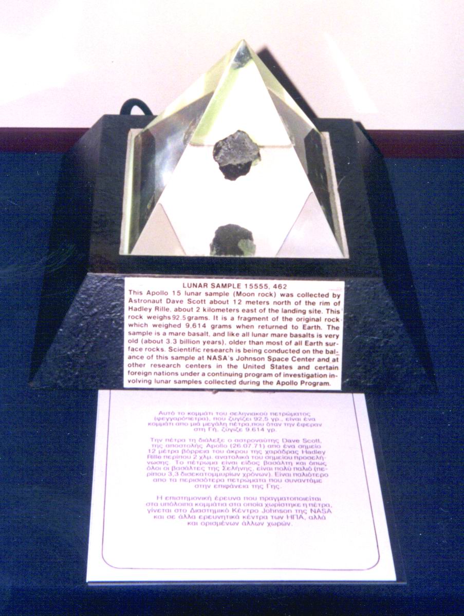Με την ευκαιρία της παρουσίασης στην Ιστοσελίδα του Τεχνικού Μουσείου του πρόσφατου, δημοσιεύματος της Εφημερίδος ΚΑΘΗΜΕΡΙΝΗ, σχετικά με τις Πέτρες που μετέφεραν οι αστροναύτες από τη Σελήνη, τα παληά στελέχη του Σωματείου θυμόμαστε με νοσταλγία τις δημιουργικές προσπάθειες που καταβάλαμε το έτος 1987 για να οργανώσουμε τη σημαντική τότε Έκθεση "30 Χρόνια στο Διάστημα" , όπου παρουσιάσαμε την πέτρα που μετέφεραν οι αστροναύτες από τη Σελήνη, την οποία διέθεσε η NASA για περίοδο οκτώ μηνών.