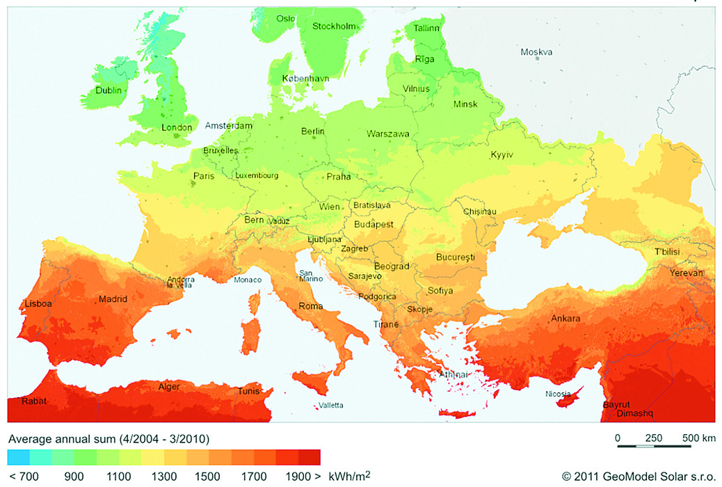 Ο χάρτης κατανομής της ηλιοφάνειας στην Ευρώπη. Η Κρήτη και το Αιγαίο εισπράττουν «κιλοβάτ Σαχάρας»