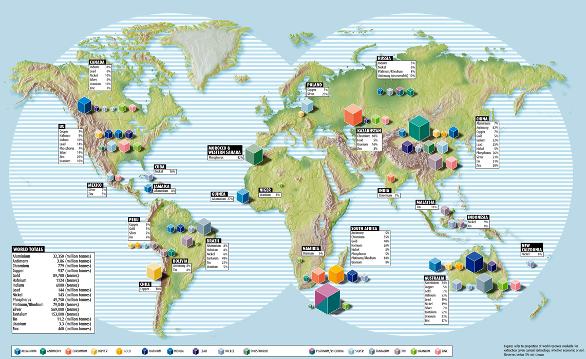 Ο χάρτης των ορυκτών στον πλανήτη, με την Κίνα να διαθέτει τα μεγαλύτερα ορυχεία σπάνιων γαιών
