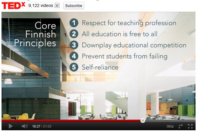 Αν μπορείτε να παρακολουθήσετε στα αγγλικά την ομιλία αυτή, ίσως μπορέσετε να καταλάβετε ακόμη περισσότερα για το Φινλανδικό μοντέλο εκπαίδευσης.