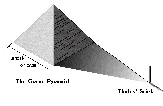 2. Μαθηματικά.Οι μαθηματικές του γνώσεις θα πρέπει να προέρχονταν από τους ιερείς της Αιγύπτου και μάλιστα ο ίδιος θα πρέπει να ήταν ο εισηγητής της γεωμετρίας στην Ελλάδα. Ο Πρόκλος του αποδίδει τις εξής ανακαλύψεις: